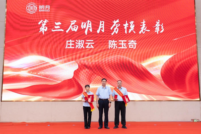 集團工會主席楊曉菁宣讀《中共青島明月海藻集團有限公司委員會、青島明月海藻集團有限公司工會委員會關于表彰第三屆明月勞動模范的決定》。勞模主題視頻《平凡之路,匠心筑夢》、《堅守如磐,微光成炬》生動展現了莊淑云、陳玉奇兩位第三屆明月勞模數十年如一日的默默堅守,以點滴微光匯聚創新力量,在平凡崗位上追求極致的“工匠精神”。陳玉奇代表勞模發言,表達了將繼續扎根崗位、銳意創新、甘于奉獻,為集團“聚勢謀遠”貢獻全部力量的堅定決心。