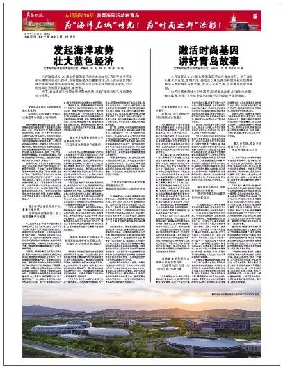 張國(guó)防董事長(zhǎng)在采訪中說(shuō),習(xí)近平總書記出席在青島舉行的慶祝人民海軍成立70周年多國(guó)海軍活動(dòng),讓我倍感自豪、備受鼓舞。總書記關(guān)于海洋命運(yùn)共同體的重要闡釋,我認(rèn)真學(xué)習(xí)了幾遍,感到心潮澎湃、激動(dòng)萬(wàn)分。作為一家正致力于海洋生物產(chǎn)業(yè)的企業(yè),我們將以此次活動(dòng)和總書記重要講話為動(dòng)力,鼓足干勁,努力提升自主創(chuàng)新水平、壯大產(chǎn)業(yè)規(guī)模,為推動(dòng)青島藍(lán)色經(jīng)濟(jì)發(fā)展、打造國(guó)際海洋名城作出更大的貢獻(xiàn)!